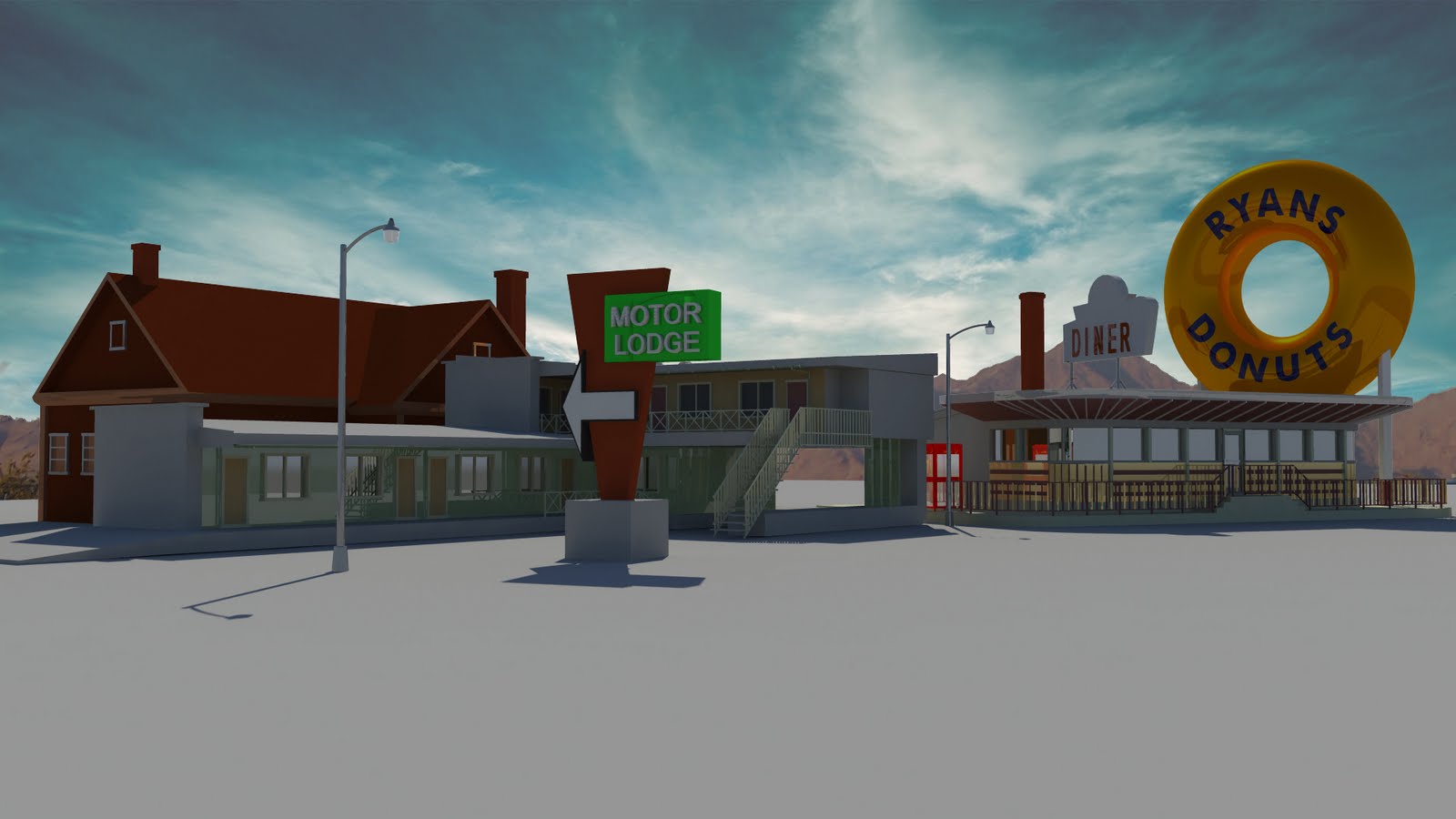 Here's a series of screen grabs from the track and also my models in wire frame to accompany them.